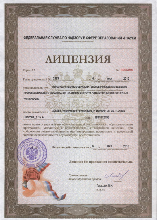 Лицензия Федеральной службы по надзору в сфере образования и науки №3393 от 6.05...